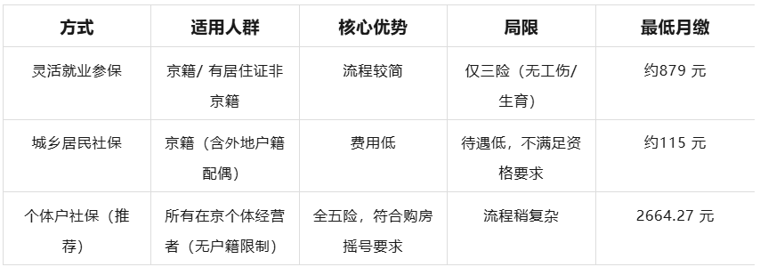 注:个体户社保依据《社会保险法》,经营者可自办参保,是非京籍最优解